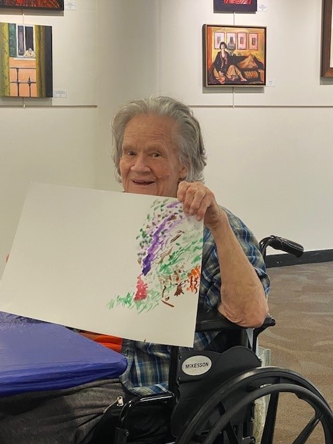 Since 2024, memory care residents and caregivers have joined us each month in the Jo Ann Rose Gallery at RCC Lake Anne. Sessions include a guided tour of engaging exhibits followed by a hands-on art activity led by RCC instructor Pauline Daniels, an expert in both arts education and neurocognitive disorders.